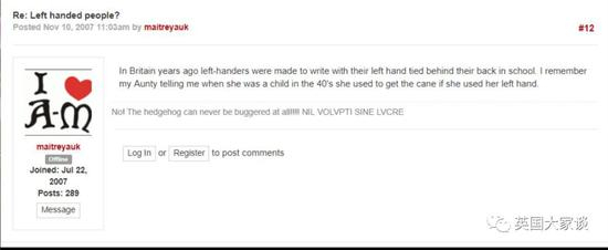 “在很多年前的英国,用左手写字的学生会被强迫把左手绑在凳子上。我的阿姨曾告诉我,在上个世纪四十年代,她曾因为用左手写字被打手板。”