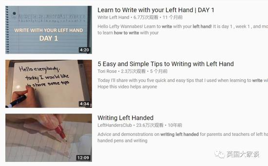 Youtube上就有很多帮助“左撇子”能更好写字的教学方法。