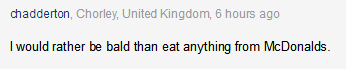 我情愿秃头也不要吃麦当劳。