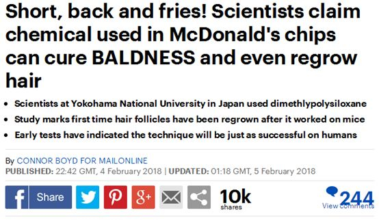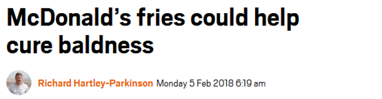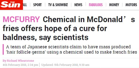 《每日邮报》:科学家声称,在麦当劳的薯条中使用的化学物质可以治疗秃顶甚至是再生头发