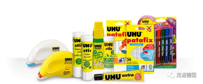 黄底黑字的Uhu胶水是德国最著名的胶水品牌,该品牌诞生于1932年。1972年,Uhu被卖给了英国Beecham集团,1994年又成为意大利Bolton集团的旗下品牌。如今,Uhu胶水畅销全世界125个国家。