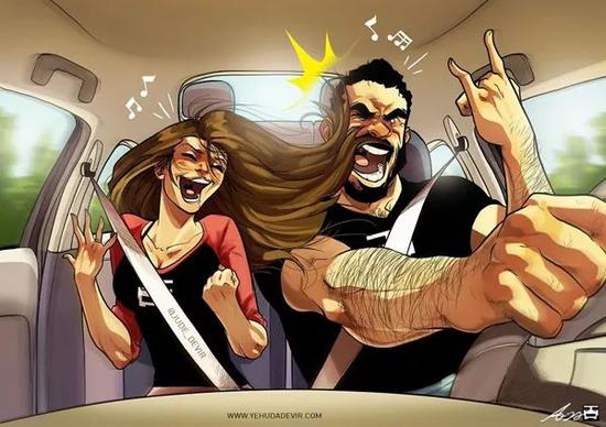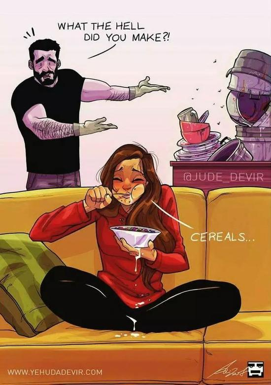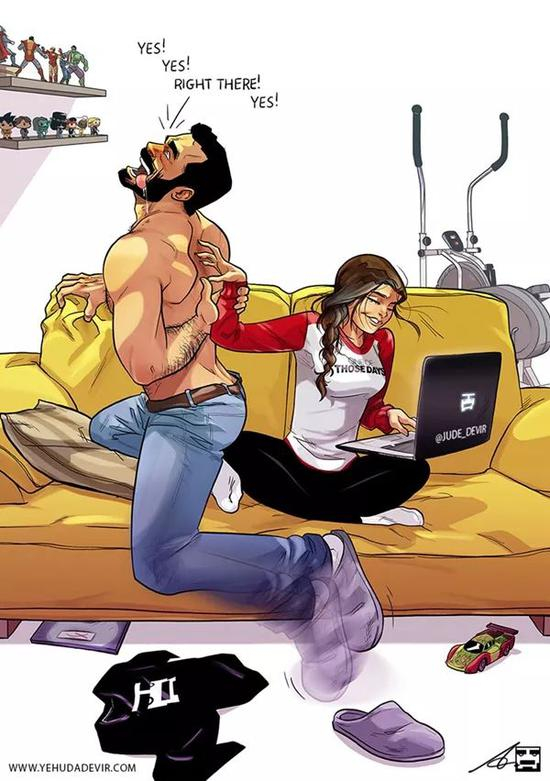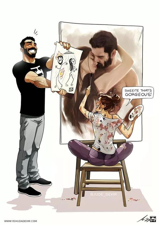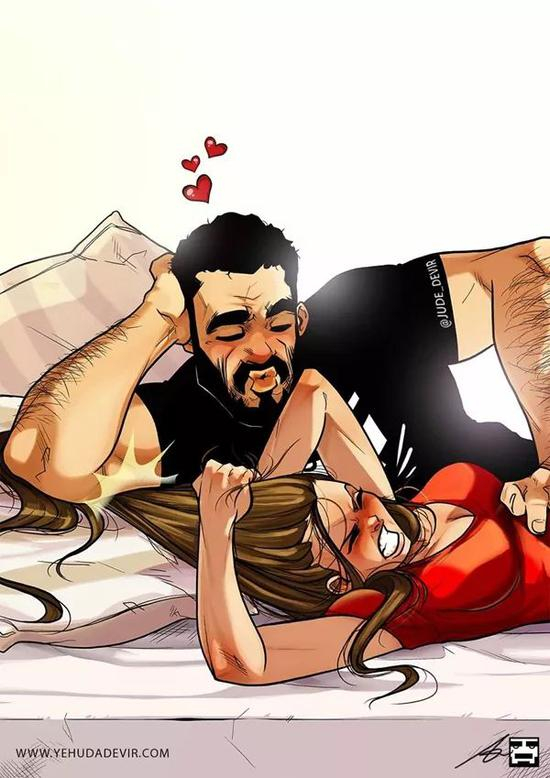 画的作者,也就是画中的男主人啦,一位来自以色列的艺术家, Yehuda Adi Devir。他说:“我的灵感是我和妻子每天的生活,我的漫画系列就是基于现实生活中发生在我们身上的时刻。”