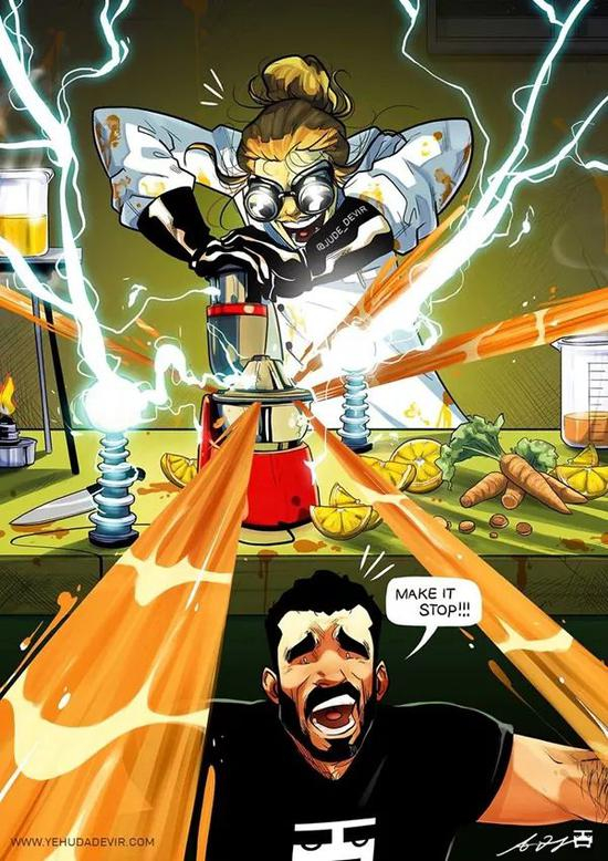 Yehuda说:“工作的过程是我和妻子玛雅在一起,通常在有趣的事情发生之后,我们就会收集概念,做一些构图。之后,我坐下来开始工作。当我完成后,玛雅就会给我提改进意见,建议颜色,排版等等。”Yehuda热爱艺术,并实现了他的梦想。他从小就开始画画,靠自己的爱好谋生。