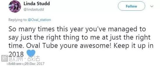 “无数次你们都在最巧妙的时间里说出了我最想听到的话。Oval地铁站你们太棒了!2018也要继续啊”