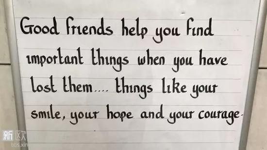 几年的时间下来,Anthony每天都坚持不懈地抄写道德经,他说:“面对那些每天都要痛苦挤地铁的人们,我唯一能做的也只有分享一点来自中国古代的智慧了。”渐渐地,有越来越多的乘客注意到了这块白板,他们在网上表达了自己对Anthony的感谢。“Oval地铁站的工作人员们应该获得新年嘉奖。他们远比某些政治家有影响力多了。”