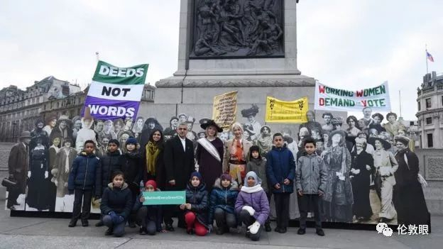 今年2月6日上午,伦敦市中心特拉法加广场举办百年纪念展,伦敦市长萨迪克•汗(Sadiq Khan)也有出席。