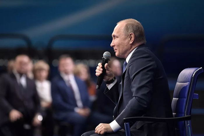▲ 1月30日,普京在莫斯科举行的竞选活动上发表讲话,并回应美国“制裁名单”事件。