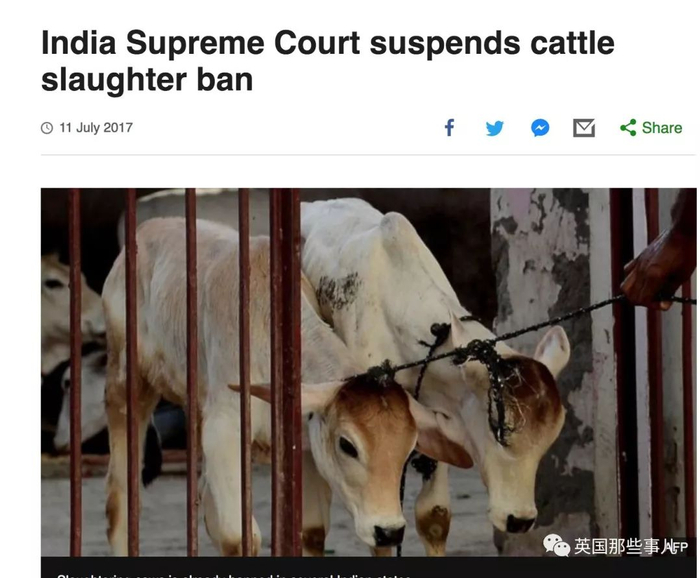 去年7月,同样是印度最高法院宣布暂停不许屠杀牛和贩卖牛肉的的禁令。