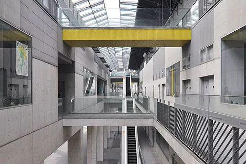 设计师运用方体的基本元素,将电影院、百货中心、博物馆、政府公共处安置在这座巨大的矩形中,让传统的车站有了新的延伸与革新,同时也让整座建筑也富有趣味与节奏感。