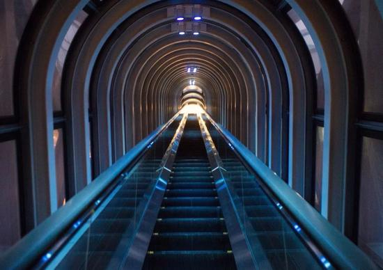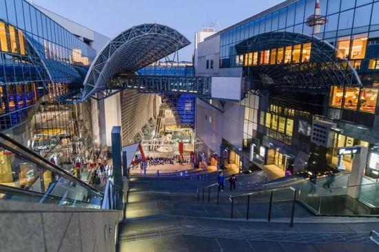 而车站内部各层通过回路来连接,从视觉上来看,各层的使用空间都融于大厅,成为了传统城市空间的延伸,而刻意不分层的设计,又消解掉了高层建筑的固有感觉。车站大厅又采用了峡谷式结构,行走其中,如同穿过京都千年的历史道路。