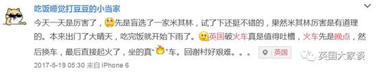 “……英国破火车真是值得吐槽,火车先是晚点,然后换车,最后直接起火了,坐的真“火”车。回谢村好艰难。”