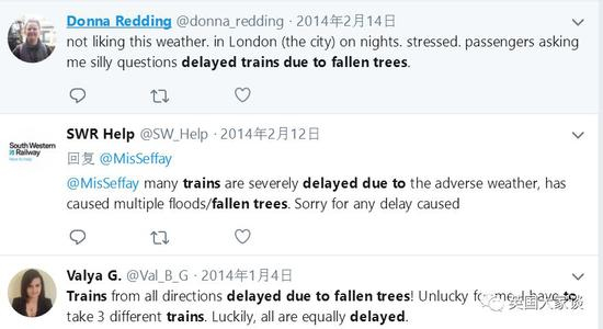 “所有方向来往的火车都因为树倒了而晚点!真的太无语了,于是我不得不连续换成3次,幸运的是,这三趟车也都晚点了呢!”