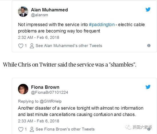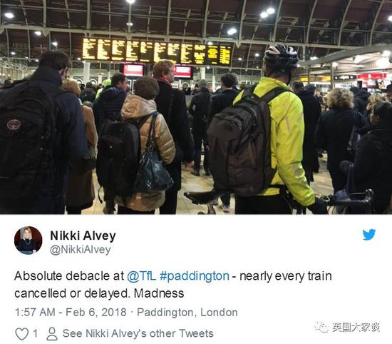 “没有预兆,没有持续通知,不知道问谁,整个帕丁顿车站乱七八糟的!班次说取消就取消了,留下一群懵逼冻傻的人。”