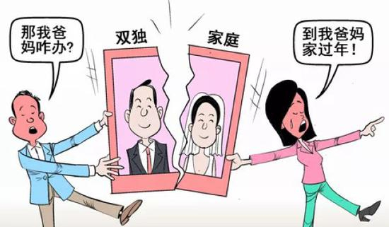然而,随着独生子女组成的小家庭越来越多,女方也希望过年能够多陪伴父母家人,“回谁家过年”这个问题就常引起夫妻间的争执。