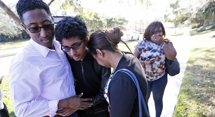 8:15 目击者回忆事发时情景。19岁的Jordyn Dahan回忆,事发时,枪手正在教室旁的走廊里。开枪的声音非常大,甚至有人是被枪手隔着门击中的。她表示,在弗罗里达一个如此安全的县,竟然发生这样的事,“不可想象”。
