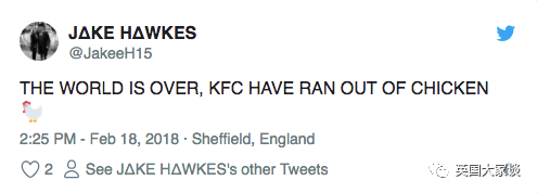 肯德基没有鸡肉而关门,真的惹怒了英国人民,大家都到twitter上投诉抱怨!