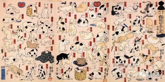 著名的江户时代浮世绘画师歌川国芳亦是典型的猫奴,而且是猫奴中的猫奴。比如画了这张暴露猫控本性的《猫饲好五十三足》……