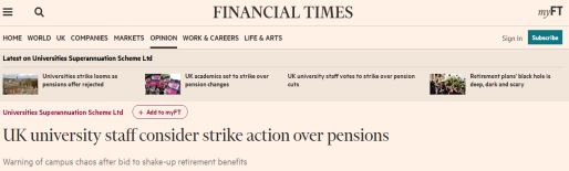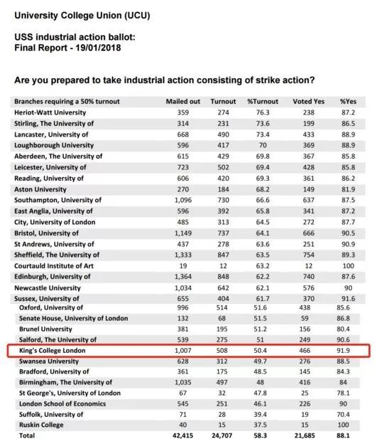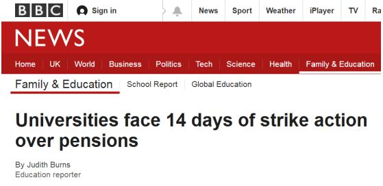 英国大学和学院工会,以下简称“工会”认为此次养老金计划变更,是校方的单方面决策,没通过工会或任何教师的投票表决;更何况,该养老金计划中的退休金金额本就已经比其他养老金计划要低很多。鉴于英国大学的管理层和教师多年以来积累的重重矛盾,工会呼吁全英高校教师联合罢工。目前已有61所高校的教师确定采取为期14个工作日的罢工行动,伦敦国王学院首当其冲。