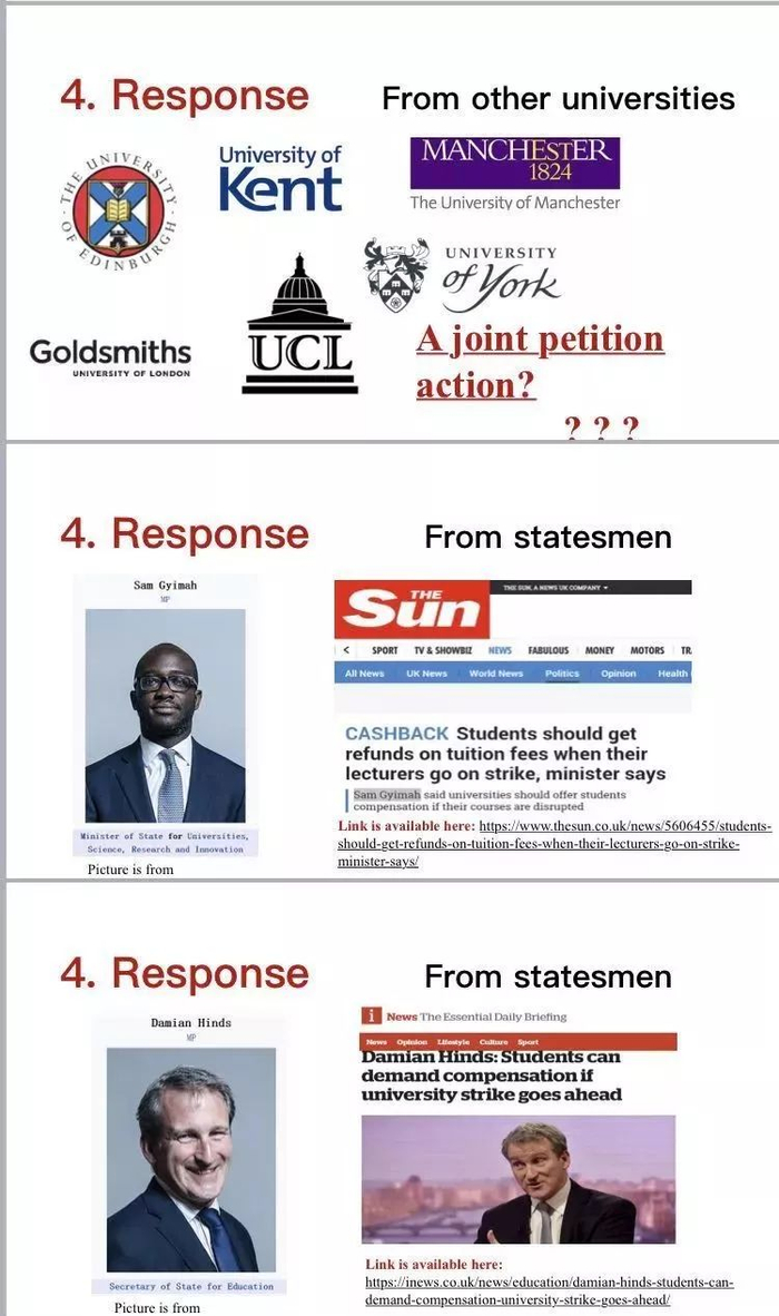 所有的中国留学生心怀梦想,承受着高昂的学费和生活费压力,漂洋过海留学英国。对于校方不采取任何实际行动维护学生权益这一现状,中国学生群体,与其他国际学生一样,表示强烈的失望和不满。请愿发起方认为,罢工本身,乃是英国大学管理层和教师之间的矛盾,本质上是英国社会的一项制度性问题。而此刻,学生们却无辜受牵连,成为了罢工活动当中的受害者,即支付高额学费却被迫停课,学生的受教育权和经济权益皆得不到应有的保障。