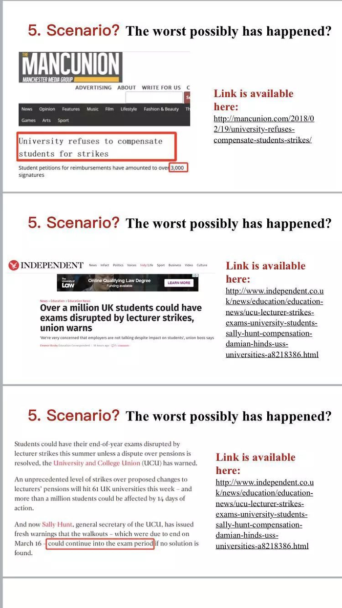 再次,倘若此次罢工成功,英国政府相关部门作出妥协协调养老金,此事暂时收场。反之,若罢工未能达到工会和老师们期望的结果,那类似的大规模罢工活动将会继续在英国上演。受影响的将不再只是现在的中国留学生,而是源源不断的来英求学的中国学子们。