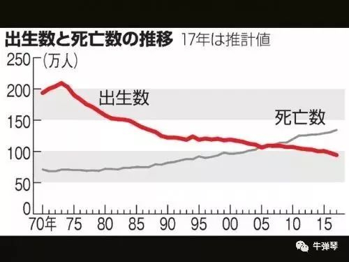 据统计,2017年日本新出生人口数将仅为94.1万人,创下1899年有统计数据以来的最低值,连续两年跌破100万大关。当年死亡人数估算值为134.4万人,比上年增加3.6万人。