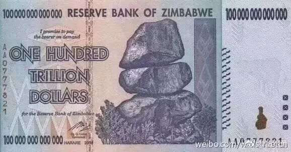 之前最大的新闻,就是津巴布韦创造了人类历史上最大面额的钞票,面值100万亿,数学不好的人,估计零都数不清。津巴布韦由此人人都迈入亿万富翁行列,但就是通货膨胀得仍旧买不到东西。