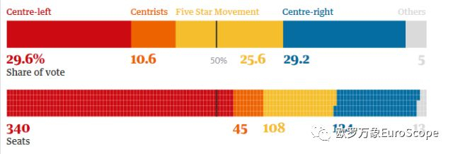 由31岁的路易吉·迪马奥(Luigi Di Maio)领导的五星运动(Five Star Movemen)是这次大选中最大的单独政党,而领先他们将近10个百分点的,是由81岁的西尔维奥·贝卢斯科尼(Silvio Berlusconi)召集起的右翼政党联盟,其中包括他领导的意大利力量党(Forza Italia)和一些极右团体。