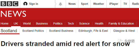 5年来,英国气象局首次启动了对格拉斯哥和爱丁堡的红色预警,这是最高级别的天气警报,意味着极端天气即将袭卷苏格兰地区,提示百姓躲避暴雪,工商企业尽量减少暴雪带来的损失,甚至可能危及生命。