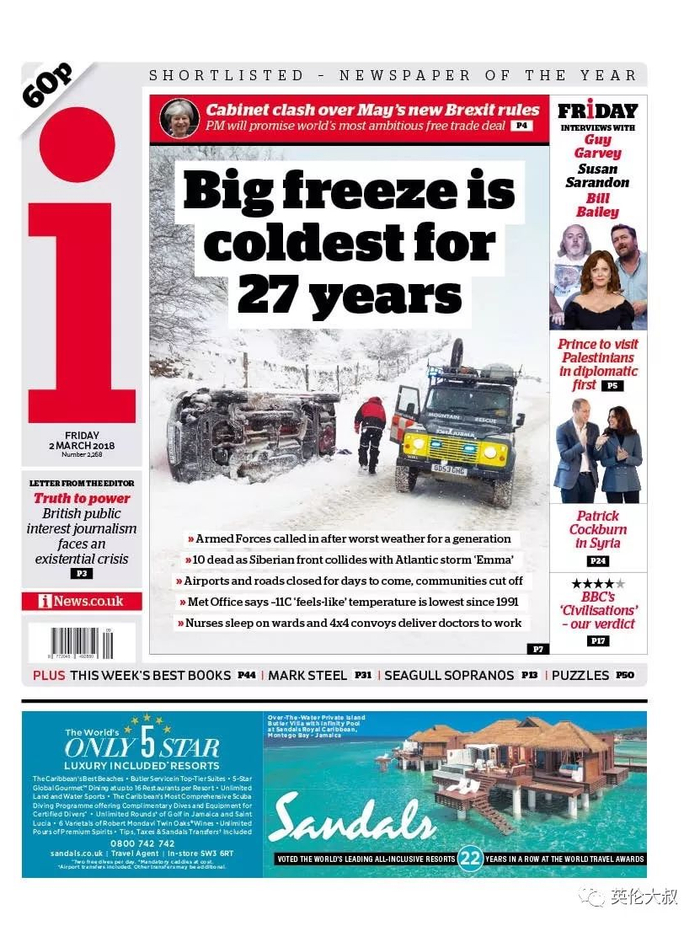 最后说一句,这次罕见的暴雪,英国气象局可是妥妥预警的,复习请戳:可怕!大雪要连下五天,英国要瘫痪了!