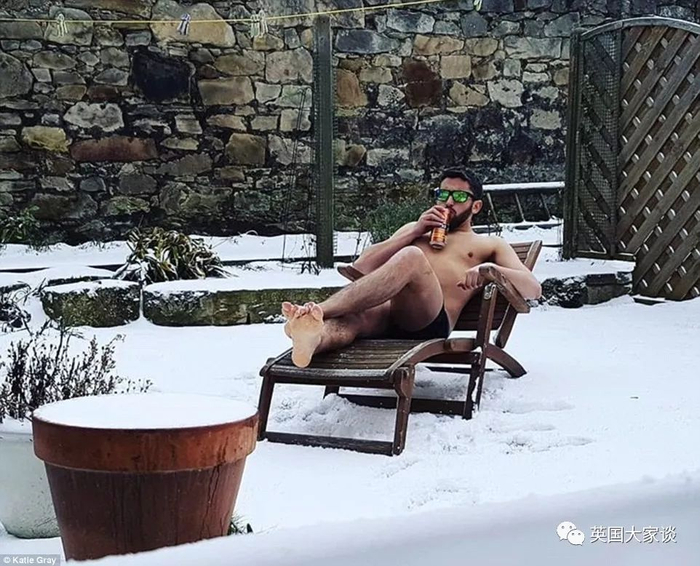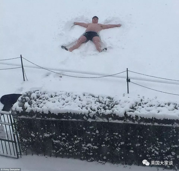 还有人穿着裤衩裸半身享受雪景,敬你是条汉子