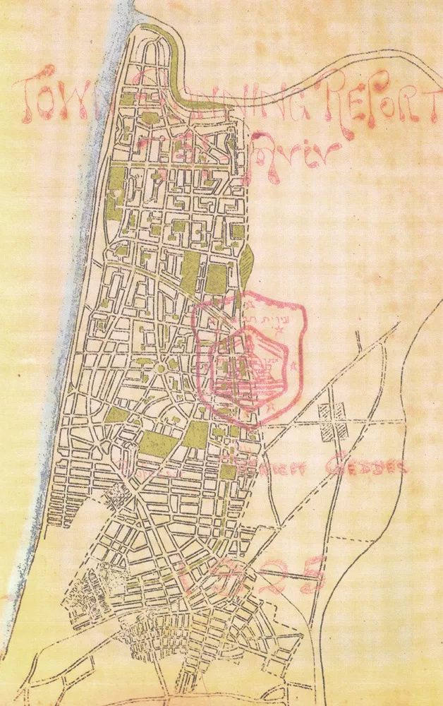 1926年时特拉维夫的城市徽章写有“海外侨民的光明及进入以色列的大门”的铭文。筑城者们口号是“我为你造房,你为我建城”。很可能从这一年开始,盖迪斯的规划就开始逐步落地生根,由草图开始成为现实了。