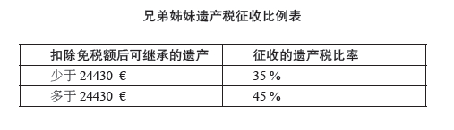 2。死者兄弟姊妹享受免税额:15932欧元(除了满足遗产税完全减免的情况)