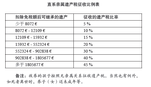 其他远方亲戚或无亲属关系享受免税额:1594欧元。