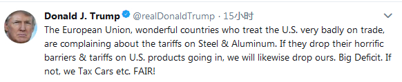 然而,说到欧盟的时候,特朗普就没有那么客气了。他直言欧盟对美国的贸易政策非常不友好。倘若欧盟不撤销对美贸易的诸多壁垒与关税,美国也不会对欧盟豁免这项金属关税。最后,特朗普还用大写加感叹号表示,这是非常“公平的”!