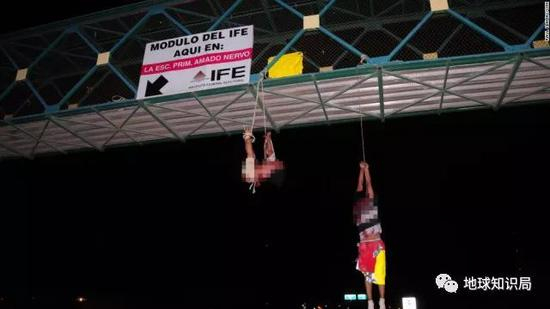 2011年9月15日,两具被乱砍的尸体像肉块那样悬挂在一座步行桥上。在尸体附近留下的布告宣称,两人由于在一个社交网络上公开抨击贩毒集团活动而遭到了杀害。
