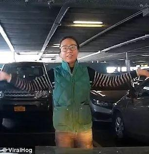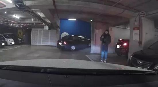 当看到男子的车想要拐到车位时,这位华人女生连连摇手!
