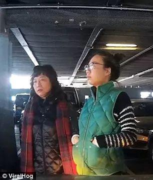 华人女子用粤语告诉自己的母亲,自己比这辆车先占到这个位置!