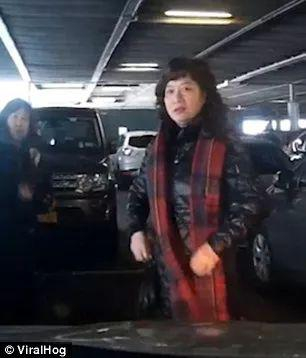 然而,与此同时,一位华人女子小跑着穿过车辆。。。