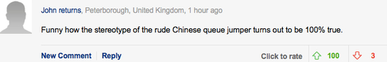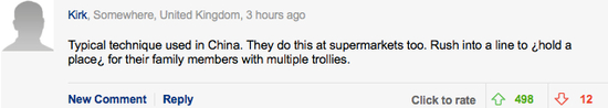 网友:中国人无礼插队的行为证明着这100%是真的!