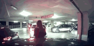 而这辆车也丝毫不客气,疑似继续驱车前行,碰了妹子2下!