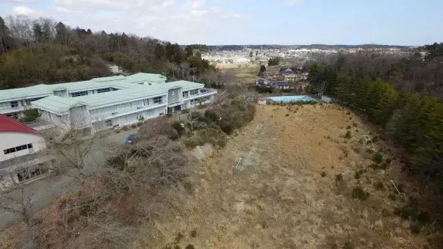 2017年3月11日,无人机航拍双叶町小学。自2011年福岛核事故发生已有六年,双叶町因临近事故发生的福岛第一核电站,至今辐射含量仍较高,因而被认定为“难以回归”的区域。