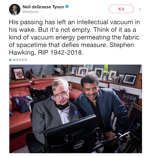 著名天文学家、主持人尼尔·德格拉塞·泰森称,