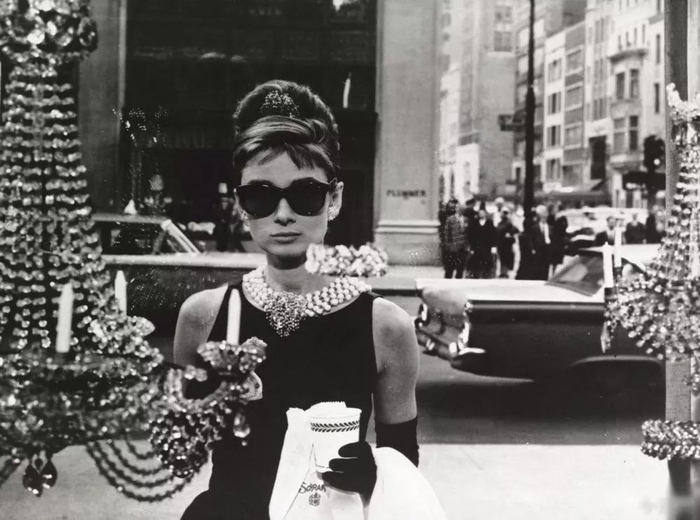 在电影《蒂凡尼的早餐》(Breakfast at Tiffany‘s)中,奥黛丽·赫本(Audrey Hepburn [’hepbə:n])身着一袭黑色礼裙,清早流连于纽约第五大道的蒂凡尼珠宝店,悠闲地吃着牛角面包看着橱窗里的首饰……