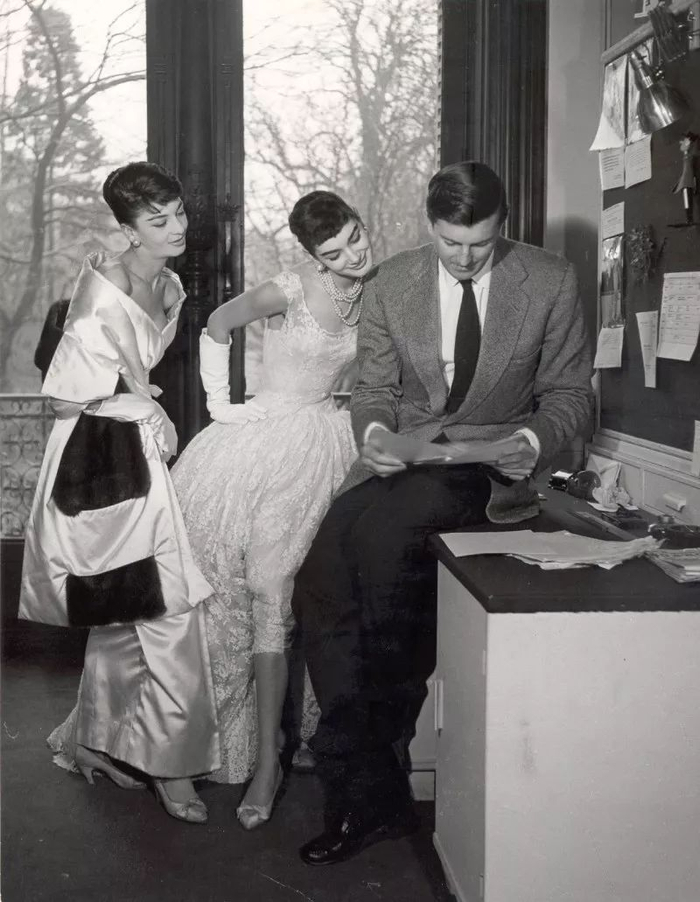 因为仰慕纪梵希的设计,赫本特地登门拜访,到纪梵希的工作室请求他为自己主演的第二部电影《龙凤配》(Sabrina)设计服装。