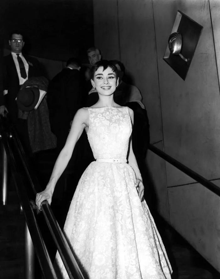 穿着纪梵希设计的礼服的赫本,1955