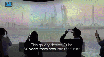 利用虚拟实现技术,展示50年后迪拜的样子,自动驾驶汽车满天飞。