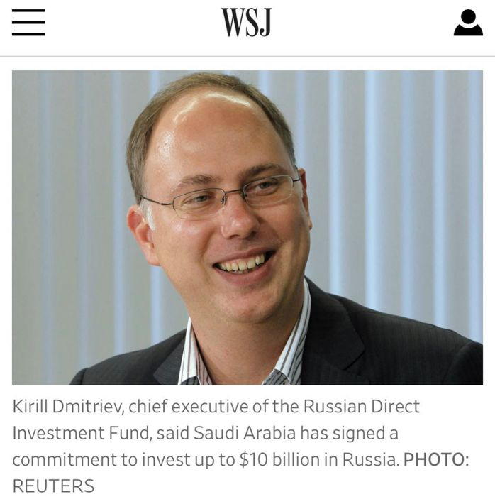 德米特里耶夫毕业于哈佛商学院,曾是Goldman Sachs的经理人。2011年,普京钦点他运作国有的“俄国直接投资基金会”,自称管理基金超过300亿美元。
