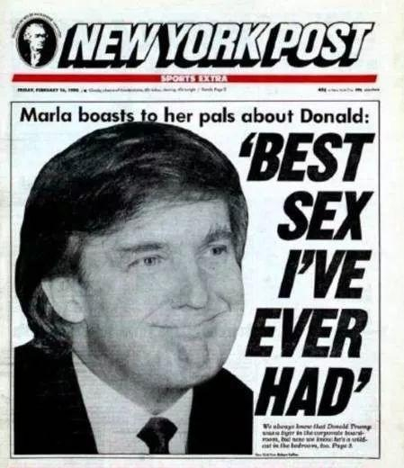 当时,特朗普还是有妇之夫,玛拉却高调告诉记者,特朗普给了她“从未享受过的,最好的性爱 ”。