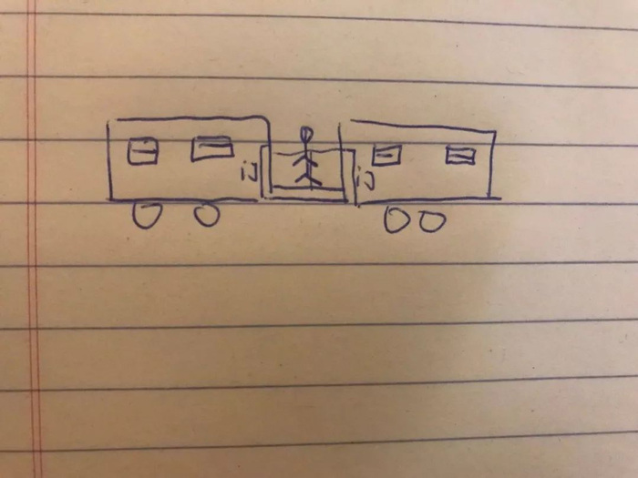 (这里解释一下,纽约地铁两个相邻车厢是半分离的,各自有门,相邻车厢连接处有一块板,如下图)
