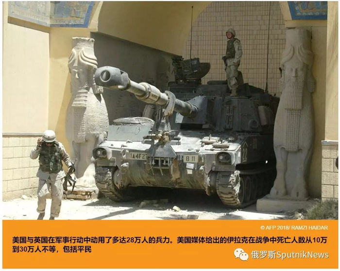 中国同俄罗斯、印度、法国等其他国家坚决主张不使用武力解决伊拉克问题。美国与英国在军事行动中动用了多达28万人的兵力。美国媒体给出的伊拉克在战争中死亡人数从10万到30万人不等,包括平民。根据世界卫生组织的数据,仅在2003到2006年间就有15万到22.3万伊拉克人丧生。